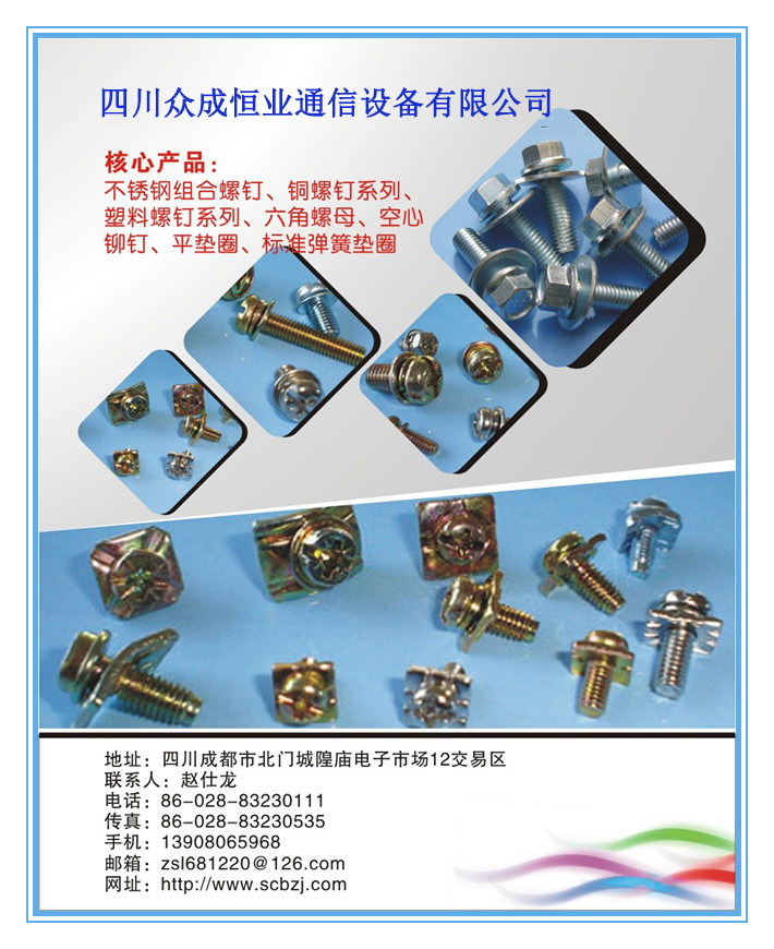 主要經營項目:標準件。電子產品、五金交電、主要經營:不銹鋼標件、銅鍍銀調試螺釘、碳素鋼標件、各種非標件、銅柱訂做,電子元器件,專業(yè)代理安費諾QMA,SMA,BNC等系列接頭,通信射頻線,連接器,尼龍扎帶等